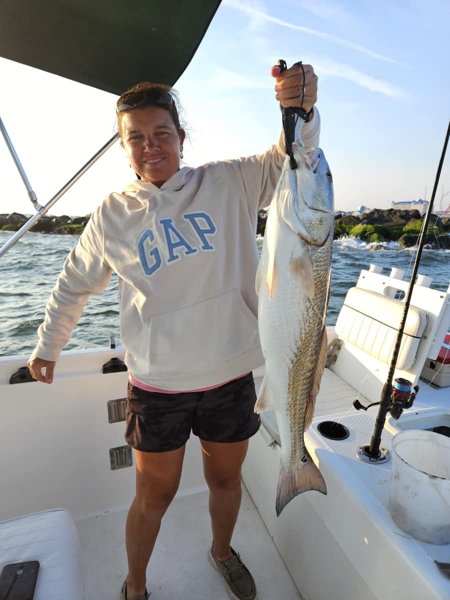 Caught this red drum today but it was 32” and it was too big to keep, yes too big 🤷🏻♀️
